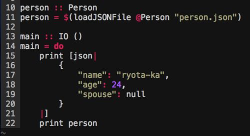 Template Haskell でコード中に JSON を埋め込んだりコンパイル時にファイルから型安全に読み込んだりする